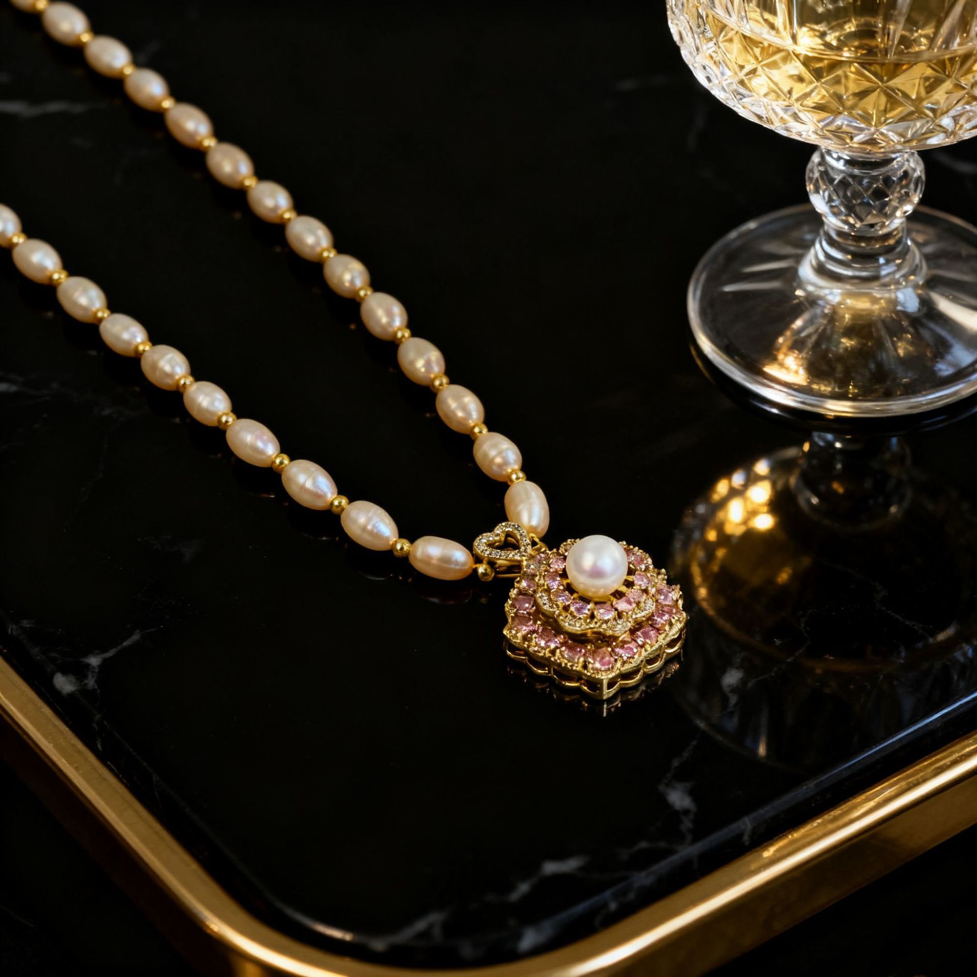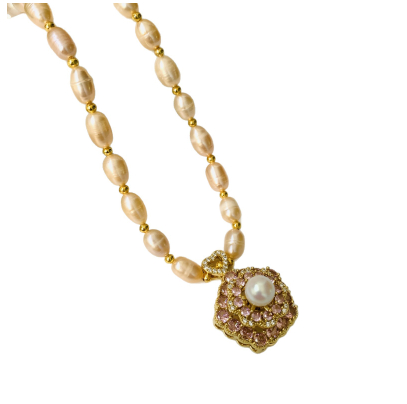 Handcrafted necklace featuring lustrous natural freshwater pearls and elegant transfer beads